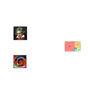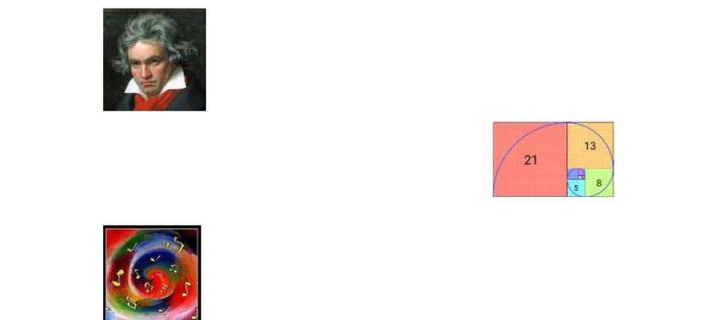 Según lo dicho, las ciencias y las humanidades encuentran un ejemplo de entretenimiento en la música. Otro ejemplo es la proporción áurea, cuya definición geométrica es la división desigual de una línea en dos partes, de tal manera que la relación entre el todo y la parte más larga es igual a la relación entre la parte más larga y la sección más corta. De esta premisa surge la conocida sucesión de Fibonacci, la cual aparece en una gran cantidad de seres vivos, desde moluscos hasta plantas, y cómo no, en la música, pudiendo aplicarse a distintos niveles, ya sea melódico, armónico, rítmico o estructural. Esta aplicabilidad de la proporción áurea en la música ha sido ampliamente estudiada, como en el caso del primer movimiento de la Sonata para dos pianos y percusión de Béla Bartók. Este movimiento consta de 443 compases, por lo que su sección áurea sería tal que: 443×0,618 = 274 (siendo 0,618 la inversa del número áureo [1/φ]), lo que indica el centro de gravedad del movimiento (compás 274). Así pues, la recapitulación (“vuelta al inicio”) de este movimiento comienza precisamente en dicho compás [3].